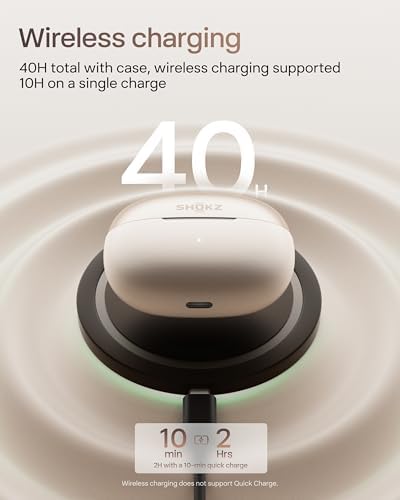 Up to 40 Hours of Listening – Enjoy 10 hours on a single charge and up to 40 hours with the charging case. A 10-minute quick charge provides 2 hours of playtime. Wireless charging supported (quick charge is not available via wireless charging).